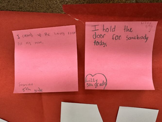 El martes, 2 de diciembre, el personal y los estudiantes de Oak Park celebraron el 67.º día de clase. Quizás se pregunten por qué es tan importante. Seguro que últimamente has oído a algún niño decir los números 6 7 mientras mueve los brazos. Así que decidimos… si no puedes vencerlos, ¡únete a ellos! Como parte de nuestro día, se retó a los estudiantes a completar colectivamente 67 actos de amabilidad. Echen un vistazo a algunos de los actos de amabilidad en las fotos.