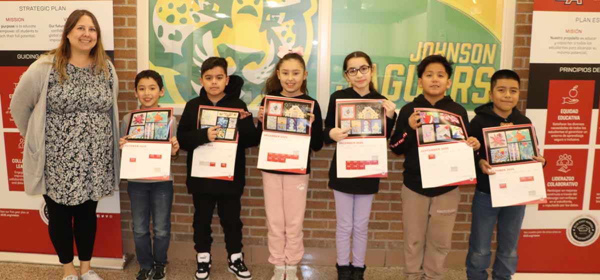 Mrs. Polly, Johnson’s art teacher, along with the entire Johnson School faculty, is thrilled to celebrate our amazing young artists who have recently had their work published! First, in the Winter Garden Art Show hosted by the City of Aurora, five Johnson students will have their artwork displayed in the 3rd-floor gallery from December 5–January 17. Congratulations to Camila Garcia Lopez, Ximena Jimenez, Fabian Batista, Tamara Ratkovic, and Sebastian Bahena for this outstanding achievement! In addition, the Winter Garden Art Show flyer features the artwork of another talented Johnson student, Diego Arroyo-Villegas. We are also excited to recognize the students whose artwork has been selected for publication in this year’s district calendar: Efrain Castro, Adolfo Torres, Mayte Vazquez, Renata Elizondo, Josue Favela Duran, Benjamin Cabral, Dylan Perez. We are so proud of the creativity, dedication, and talent our Jaguars continue to show. Go Jaguars!