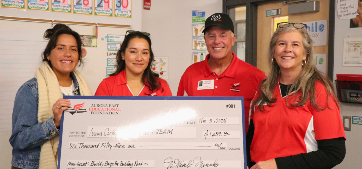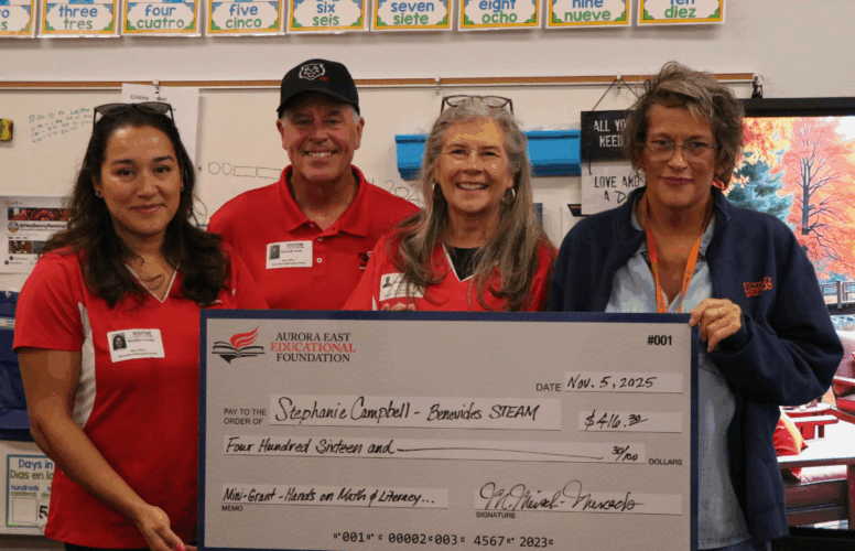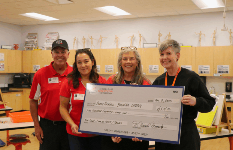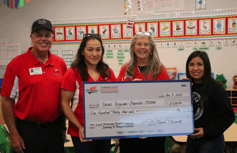 Desde 1993, la Fundación Educativa Aurora Este ofrece un programa de becas educativas para beneficiar a los estudiantes del Distrito Escolar 131 del Este de Aurora. Desde su creación, se han otorgado más de $360,000 en becas a docentes y escuelas. Cada año, la Junta Directiva de la Fundación revisa y selecciona proyectos de becas de amplio alcance con potencial de impacto significativo. Estos proyectos se implementan durante el año escolar en curso o el siguiente.