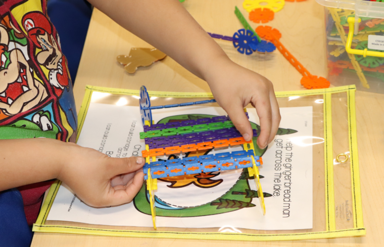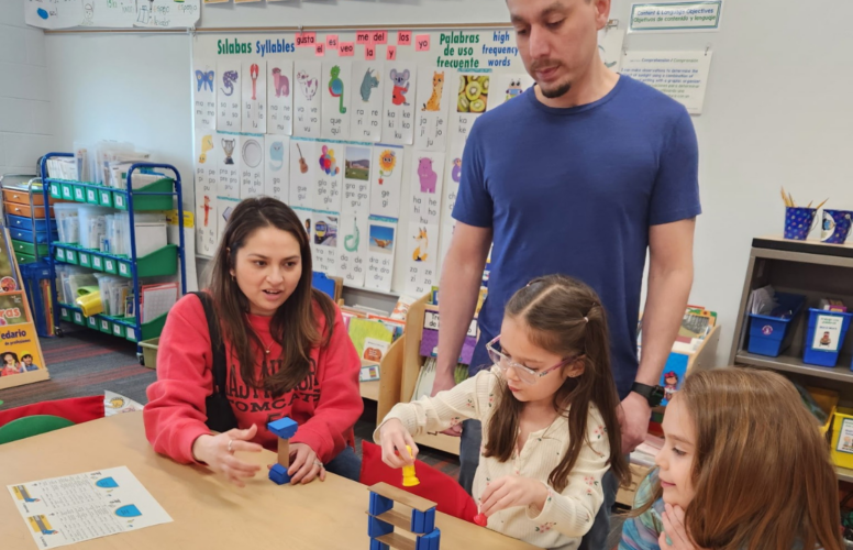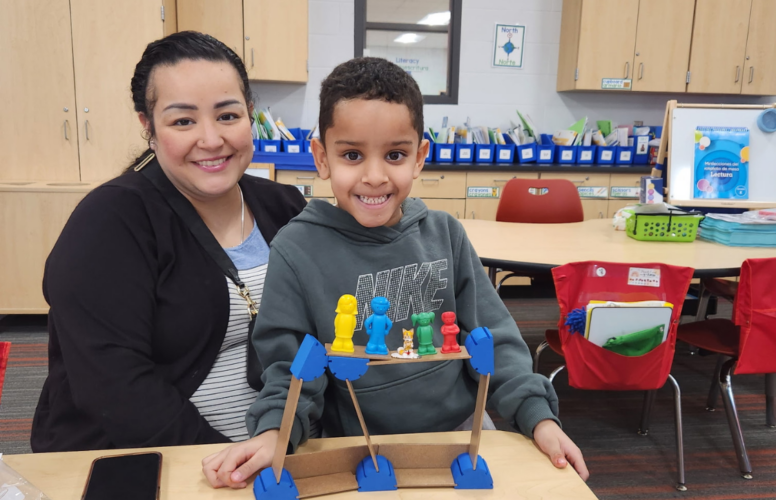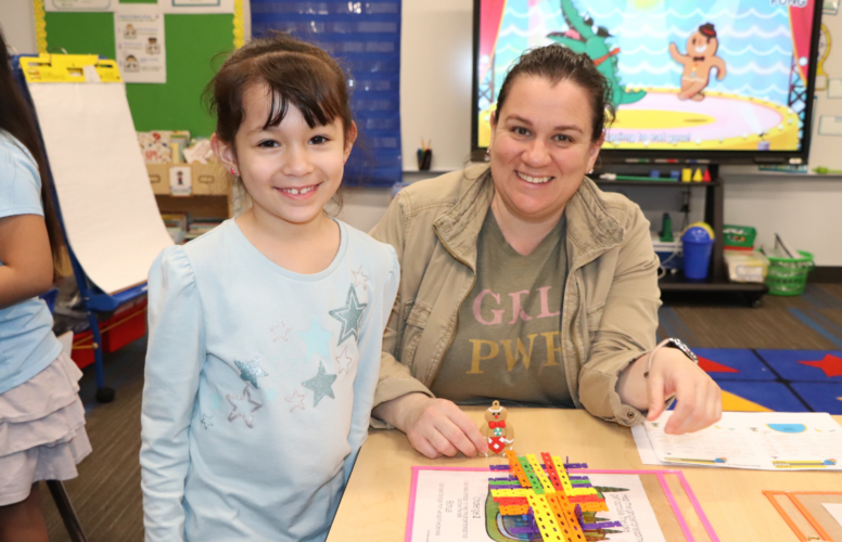 La ingeniería y el pensamiento de diseño fueron protagonistas en sesiones como “Bridge the Gap” (Cerrando la brecha), donde las familias trabajaron juntas para construir estructuras sólidas y estables. Los estudiantes también exploraron la programación y la resolución de problemas mediante los *Bee-Bots*, mientras que la sesión “Ingeniería con bloques de patrones” fomentó la creatividad, el razonamiento espacial y el diseño.