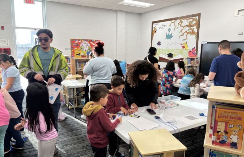 Las familias rotaron por una variedad de sesiones interactivas, cada una diseñada para despertar la curiosidad y fomentar la colaboración. En “Fly Away” (Haciendo un avión), los estudiantes exploraron el diseño y la aerodinámica mientras creaban y ponían a prueba sus propios modelos voladores. Las Olimpiadas de Física (“Empujes y tirones”) invitaron a los participantes a investigar la fuerza y el movimiento a través de desafíos prácticos y atractivos.