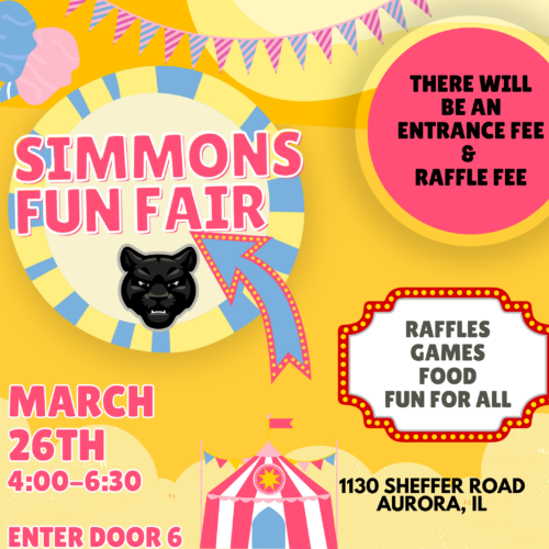 Simmons Middle School is excited to invite students, families, and community members to our Simmons Fun Fair on March 26 from 4:00–6:30 PM! This fun-filled afternoon will help raise funds to support school programs and activities. A small entrance fee will be collected at the door, and guests will also have the opportunity to participate in a raffle for great prizes.