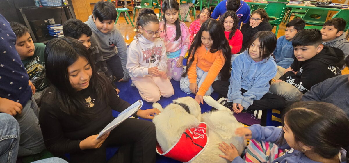 Students in Mr. Tejada’s fourth grade class have been writing journal entries from Doc our comfort dogs point of view. Today students were given the opportunity to share those stories with do. It was a very heartwarming moment!