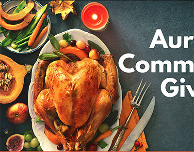 La despensa de alimentos Marie Wilkinson y la despensa de alimentos interreligiosa del área de Aurora van a patrocinar una distribución de comida festiva el sábado, noviembre 21 de 9:00 am hasta 1:00 pm en Phillips Park, 1000 Ray Moses Drive, Aurora. Para registrarse para esta distribución especial de comida y pavo para el día de la acción de gracias, visiten www.auroracommunitygives.org