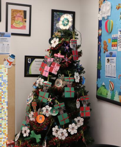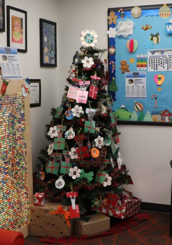 In a heartwarming effort, all GCC students participated by decorating the tree with their own personalized ornaments. This collective project has transformed our tree into a true reflection of our creative and vibrant school community.