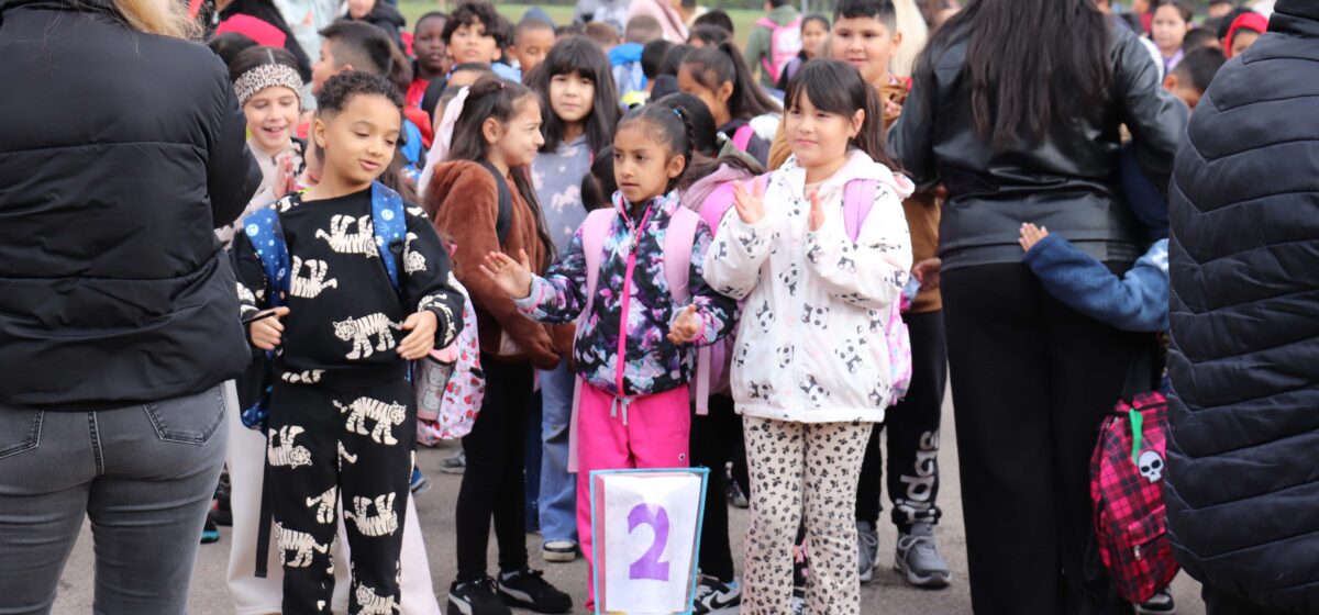 Los estudiantes desde Kínder hasta quinto grado acudieron en masa, optando por ir caminando a la escuela en lugar de en coche. El momento culminante de la mañana fue un desfile en el que los estudiantes recorrieron las instalaciones de la escuela antes de entrar. Encabezando la procesión iban dos invitados muy especiales: Gus y Rosie, nuestros queridos perros de terapia del programa EA Paws, que ayudaron a guiar el desfile matutino.