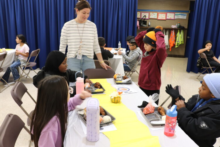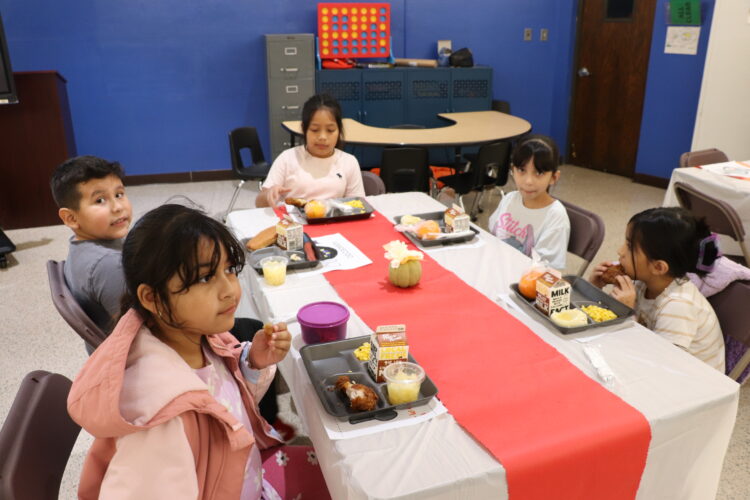 Los estudiantes de Krug disfrutaron de varias actividades divertidas el martes, 25 de noviembre. Los estudiantes de 2.º y 3.er grado disfrutaron de su almuerzo tradicional juntos en el salón multiusos. Los estudiantes de 2.º grado decoraron los manteles individuales de ambos grados, y todos disfrutaron de la comunidad de comer juntos con sus maestros. A lo largo del día, todos los grados participaron en el Trote del Pavo. Los estudiantes tuvieron la oportunidad de competir por un premio al correr la mayor cantidad de vueltas al aire libre o divertirse en el patio de recreo. ¡Gracias a las Sras. Torres y Buckingham por organizar el almuerzo, y a las Sras. Cudebec, Lansford y Henry por su colaboración en el Trote del Pavo!