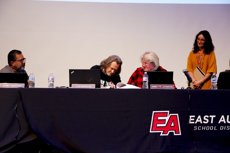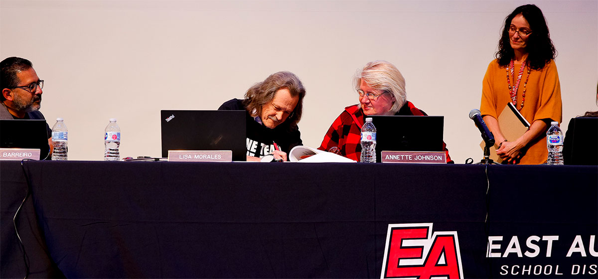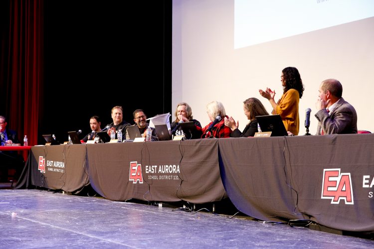 En la reunión de la Junta Educativa, la presidente de la junta escolar Annette Johnson y el presidente del sindicato Gerry Mestek firmaron oficialmente un nuevo contrato de tres años (2018-2021) entre la Junta Educativa de Distrito Escolar 131 de East Aurora y el Consejo de East Aurora, Federación Americana de Maestros locales 604.
