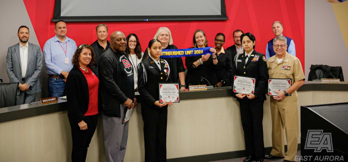 The EAHS Naval Junior Reserve Officers Training Corps (NJROTC) was recognized at the October 7, 2024, Board of Education meeting for receiving the Naval Honor School 2024-25 Distinguished Unit with Honors Designation which is awarded annually to schools whose NJROTC program ranks in the top 20 percent in each NJROTC area.