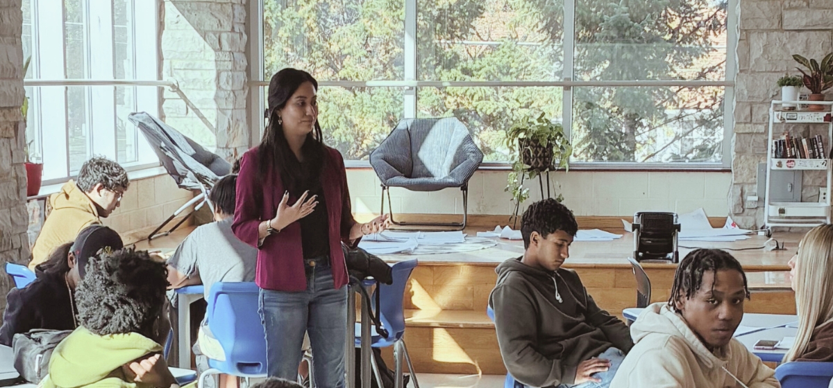 La representante estatal de Illinois, Barbara Hernandez, regresó a su antiguo instituto, East Aurora High School, el 6 de noviembre para hablar con los estudiantes del programa INCubator, impartido por Mark Lyons. La Sra. Hernandez compartió su experiencia como legisladora en esta clase, que se desarrolla al estilo del programa Shark Tank, respondiendo a las preguntas de los estudiantes sobre sus productos y los aspectos legales de Illinois que podrían afectarles. También respondió preguntas sobre la ayuda que el estado ofrece a las pequeñas empresas. La representante Hernandez dedicó tiempo a hablar con cada uno de los grupos sobre su producto y a analizar los pasos que deben seguir desde una perspectiva legal para lograr su objetivo de crear su producto antes de que finalice el año escolar.