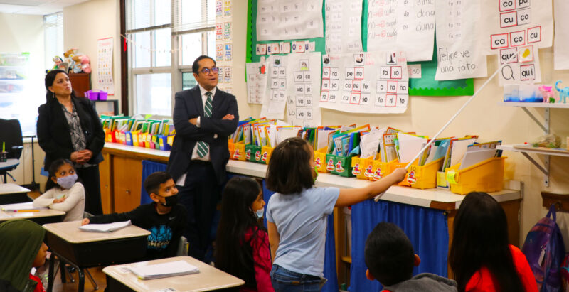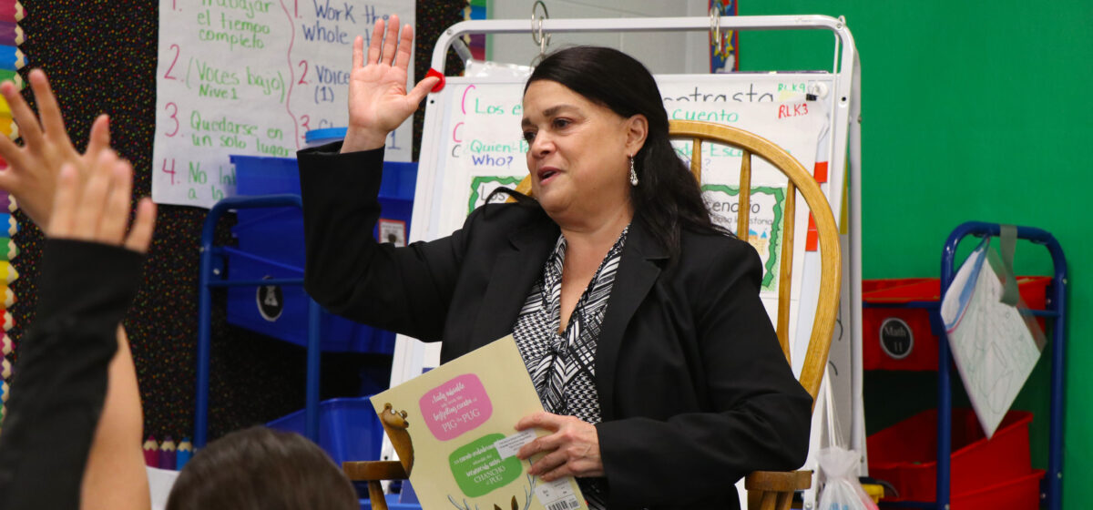 La comunidad del Este de Aurora recibió el martes, 26 de abril la visita de una cara conocida y siempre bienvenida. La Superintendente de Educación del Estado de Illinois, Dra. Carmen Ayala, visitó las escuelas de Bardwell y Rollins Elementary para conversar con los estudiantes y el personal en los salones de clase de lenguaje dual.