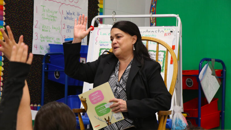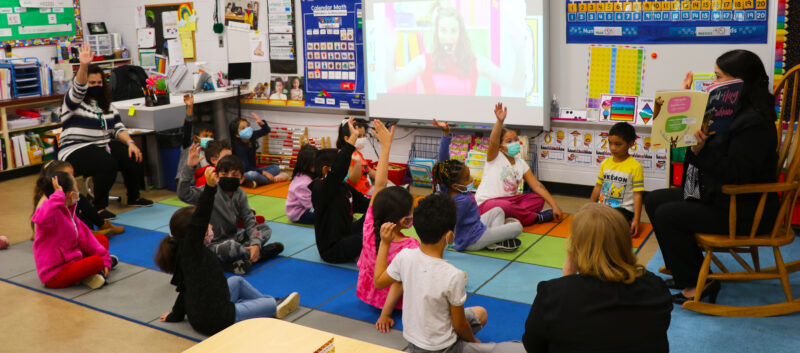 En la escuela de Bardwell Elementary, los estudiantes mostraron su trabajo sobre oratoria y desarrollo del lenguaje, mientras que los estudiantes en la escuela de Rollins Elementary compartieron qué animal preferirían abrazar mientras la Dra. Ayala leía en voz alta el libro I Need a Hug (Necesito un abrazo).