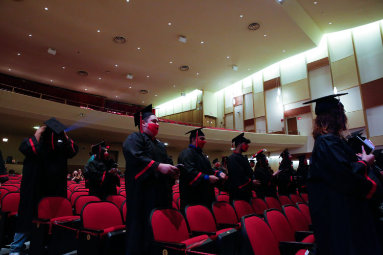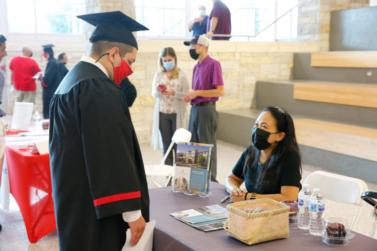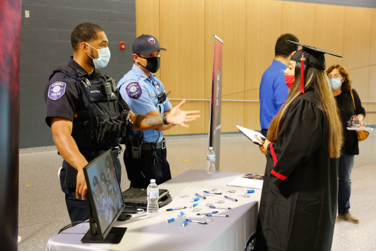 On July 29, senior Tomcats from the Class of 2021 attended a Summer Graduation Ceremony in the Hawks Auditorium at East High. Immediately following the ceremony, students and families enjoyed some hospitality and gathered for a Career Fair in the Atrium, as local colleges, universities, and employers were on site. The new graduates spoke with representatives and learned about job opportunities as well as post-high school options.