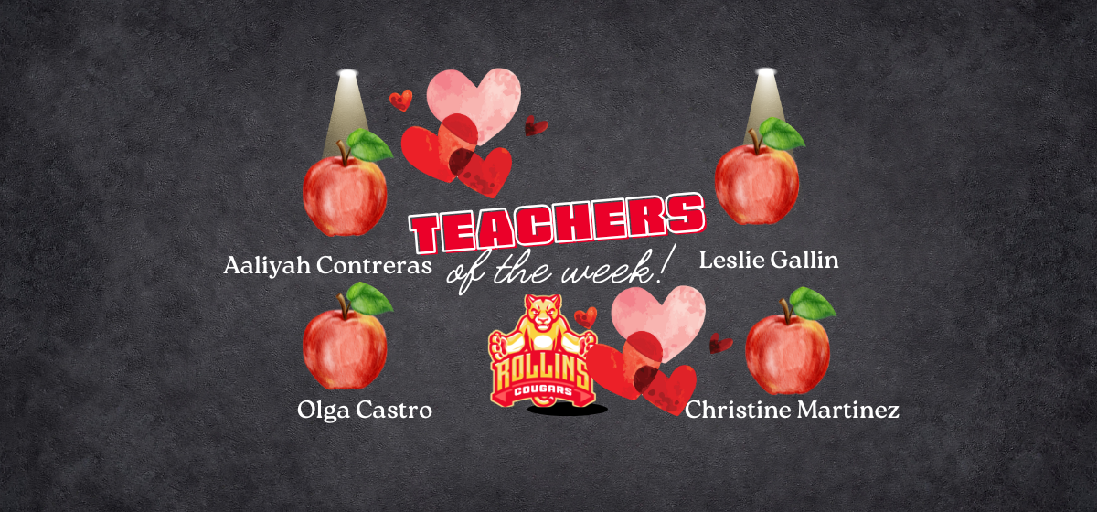 We are excited to recognize Aaliyah Contreras, Leslie Gallin , Olga Castro and Christine Martinez as our Teachers of the Week! They are dedicated members of the Rollins team create such a welcoming, supportive, and engaging environment for all students and staff! Read more about them below!