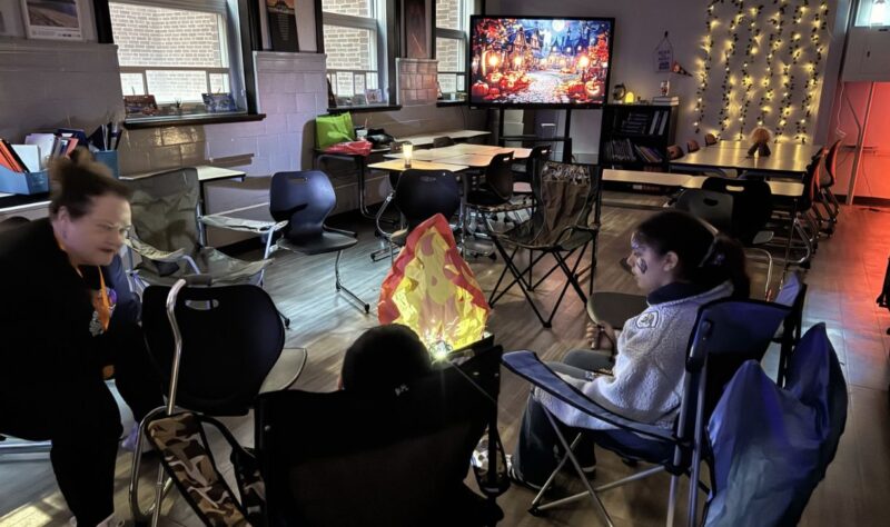 Waldo Middle School llevó a cabo la primera Fiesta del Terror Anual el jueves, 30 de octubre, una emocionante velada en la que las clases de Artes del Lenguaje Inglés y Estudios Sociales cobraron vida a través de las enriquecedoras tradiciones del Día de los Muertos. Los maestros de Artes del Lenguaje Inglés y de Estudios Sociales se unieron para crear 12 divertidas actividades y organizaron un “trunk or treating” para toda la familia. Las familias de Waldo exploraron actividades culturales como la construcción de ofrendas, la creación de calaveras de azúcar con lenguaje figurativo y el juego de la lotería, mientras aprendían sobre la historia y el significado de esta celebración especial. Desde búsquedas del tesoro con pistas contextuales hasta escritura creativa y arte, ¡fue una noche de aprendizaje, diversión y espíritu comunitario!